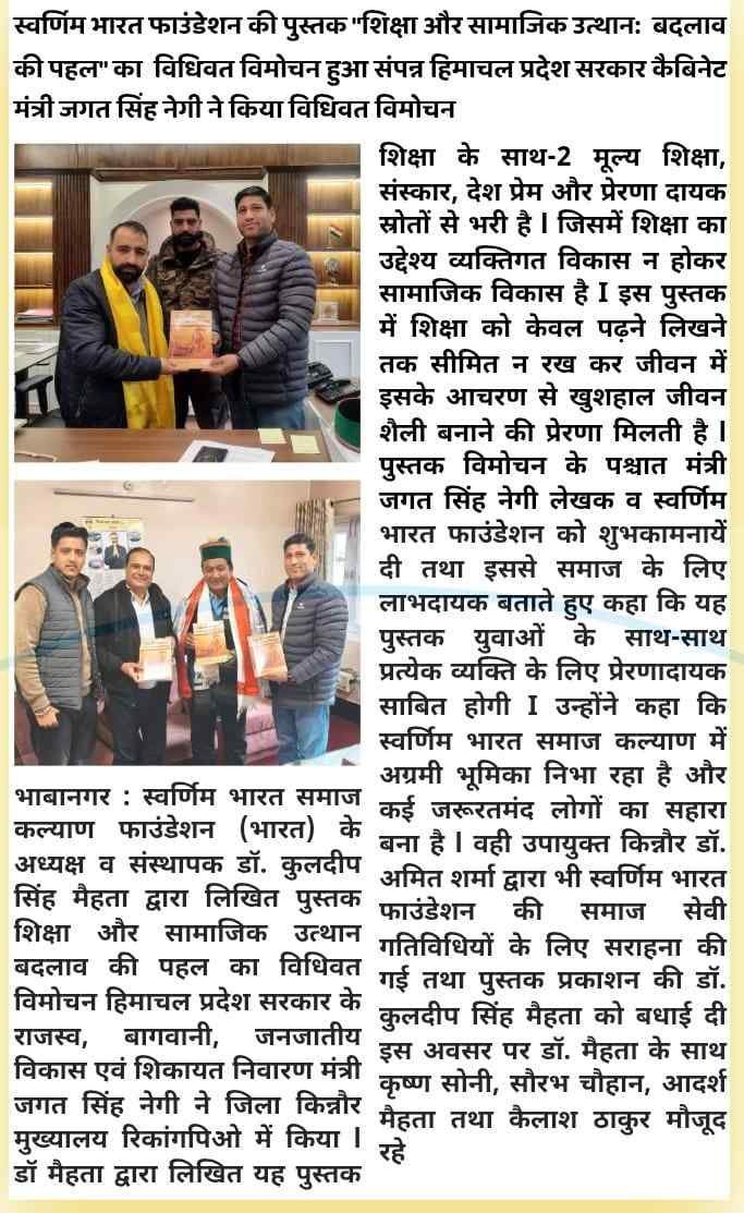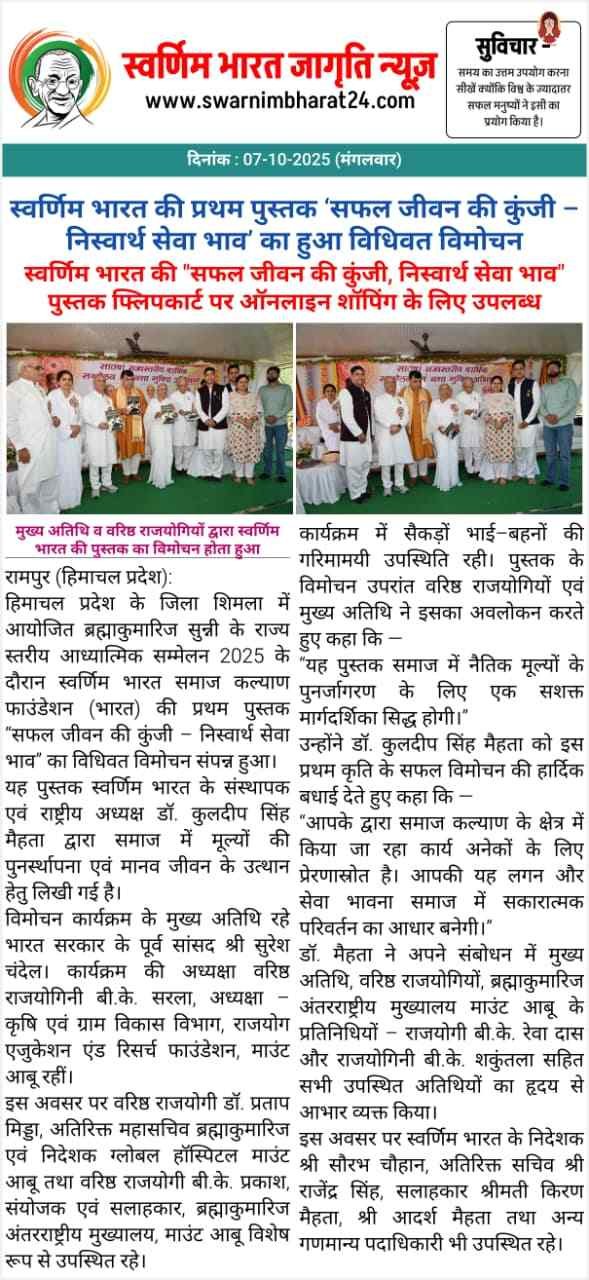 Under the leadership of Dr. Kuldeep Singh Mehta, Swarnim Bharat emerged as a national platform dedicated to uniting socially conscious citizens, youth, and volunteers across India for constructive nation-building efforts.