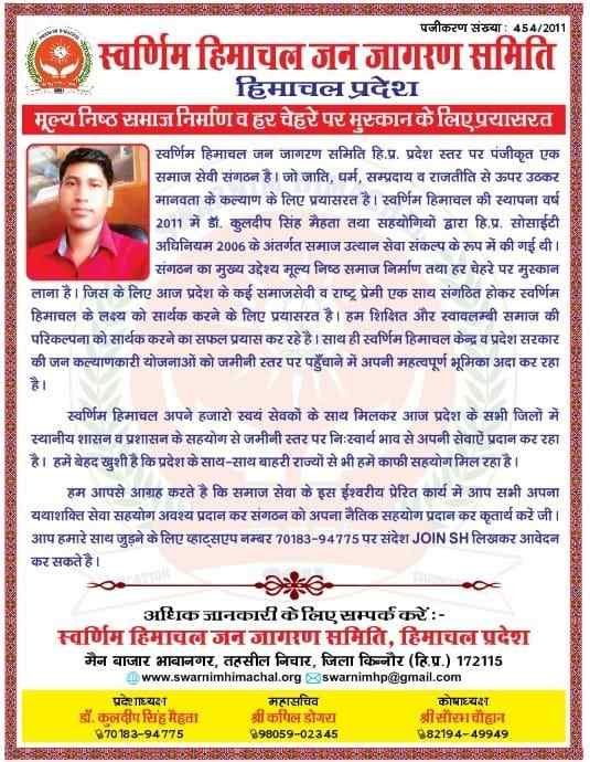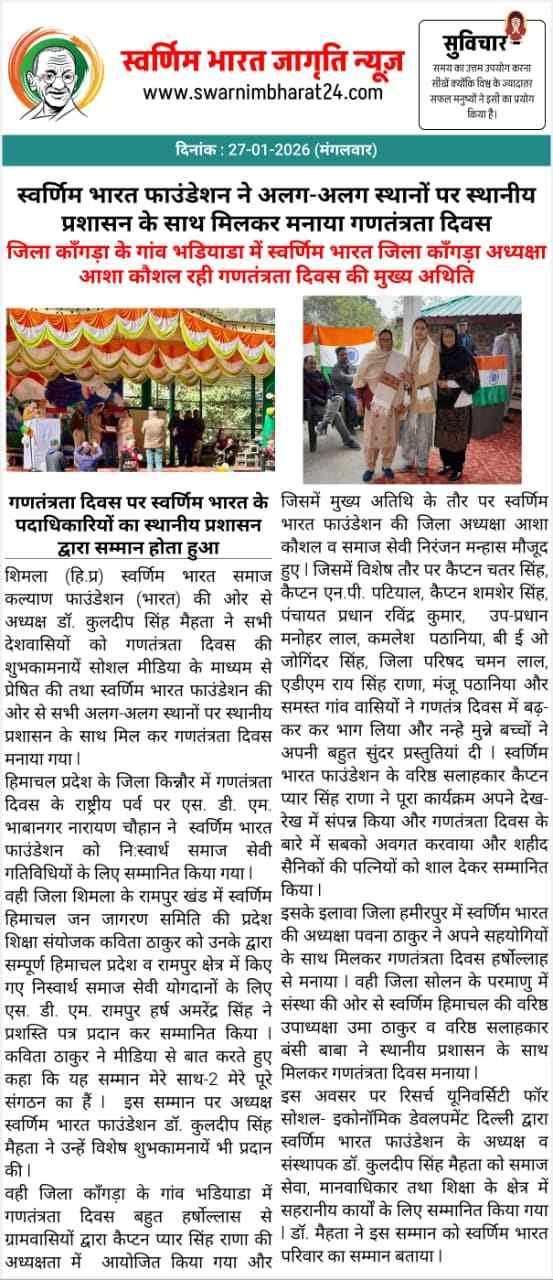 Under the leadership of Dr. Kuldeep Singh Mehta, Swarnim Bharat emerged as a national platform dedicated to uniting socially conscious citizens, youth, and volunteers across India for constructive nation-building efforts.